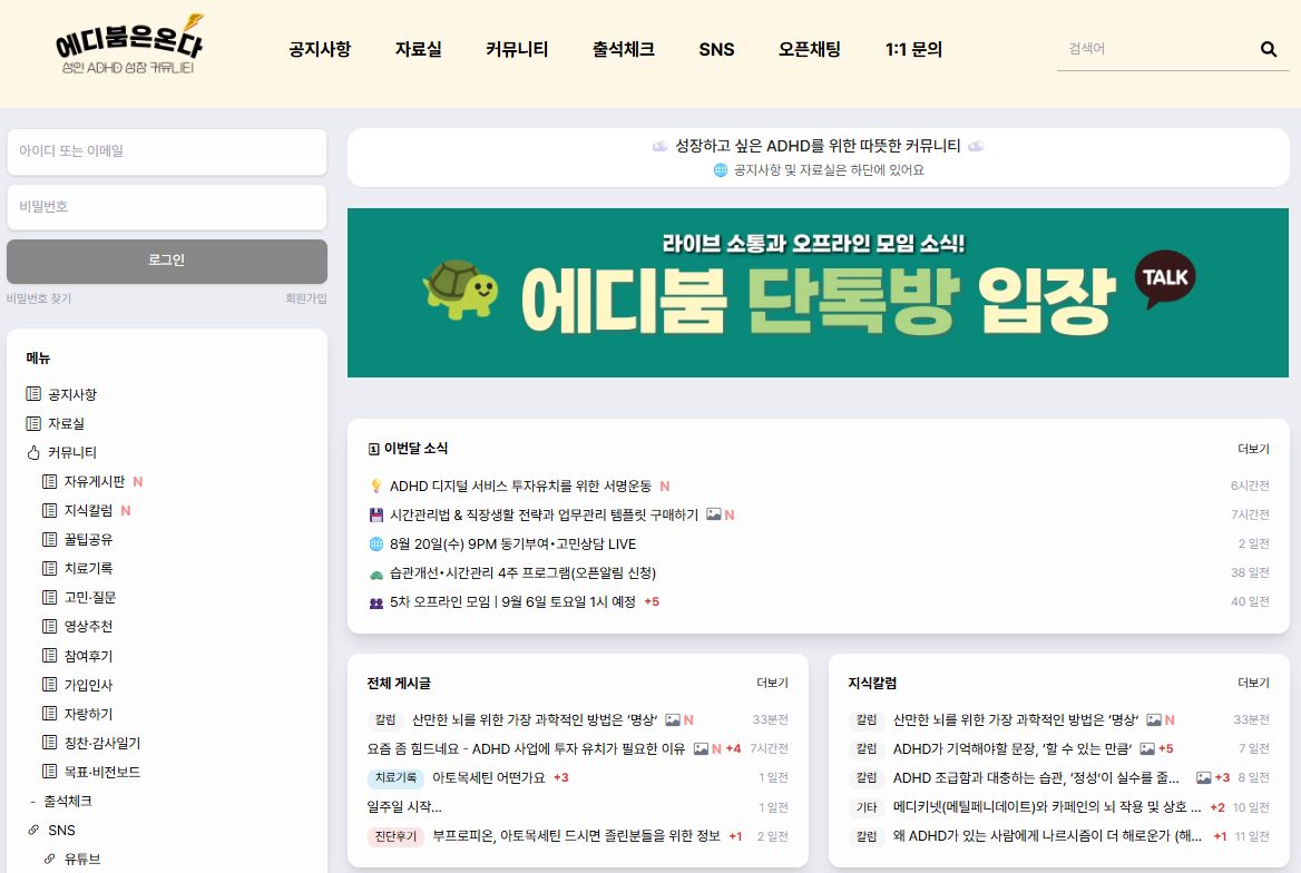 1. 성인 ADHD 커뮤니티 – 에디붐은온다